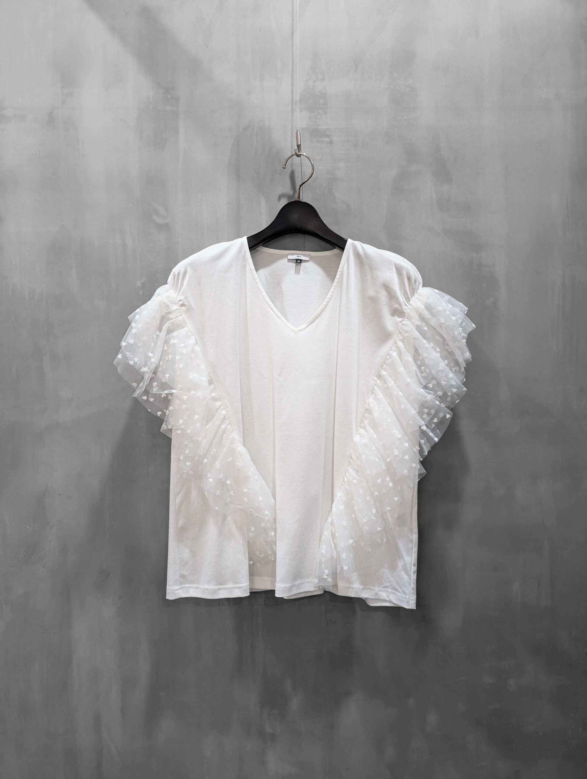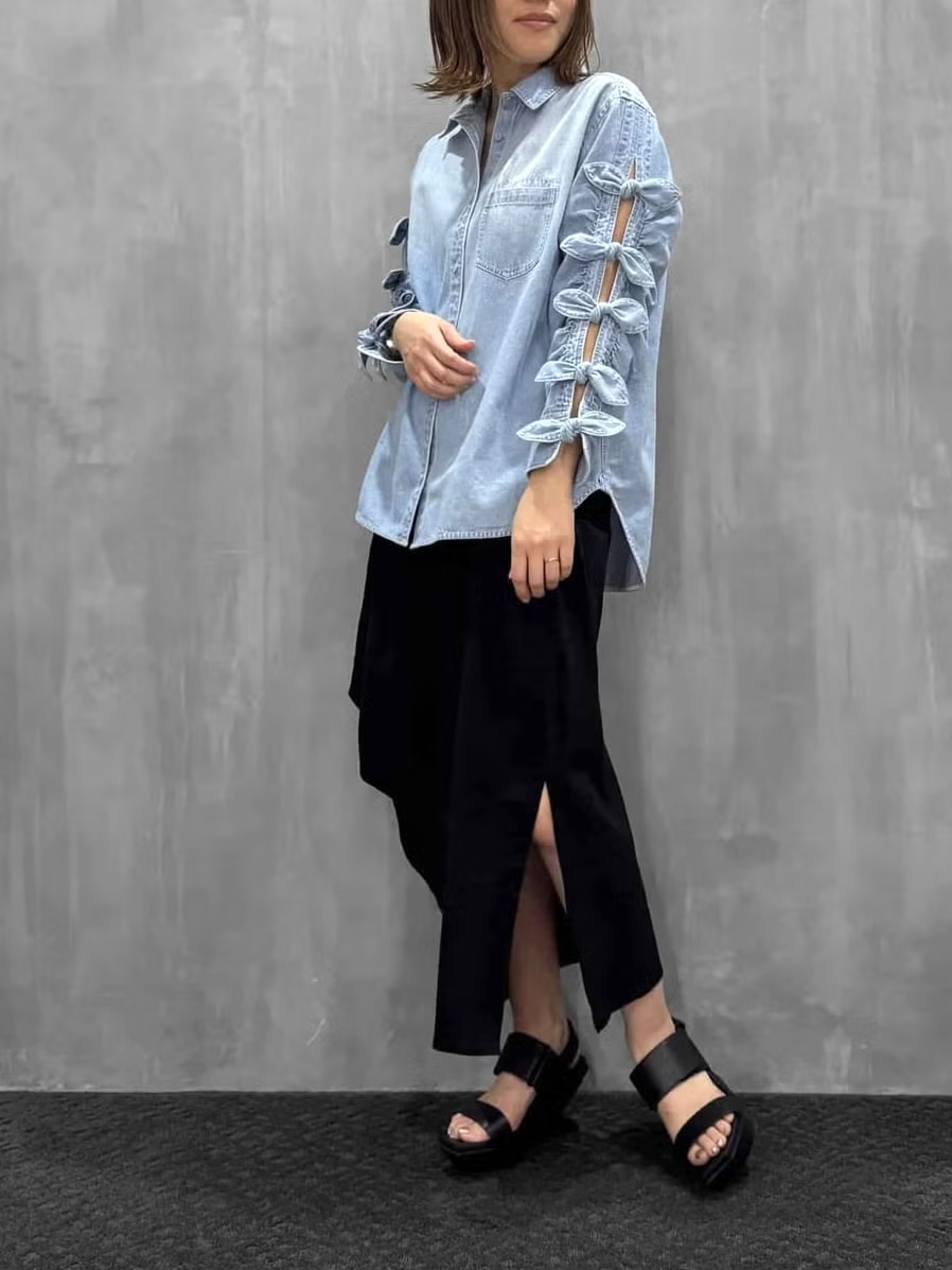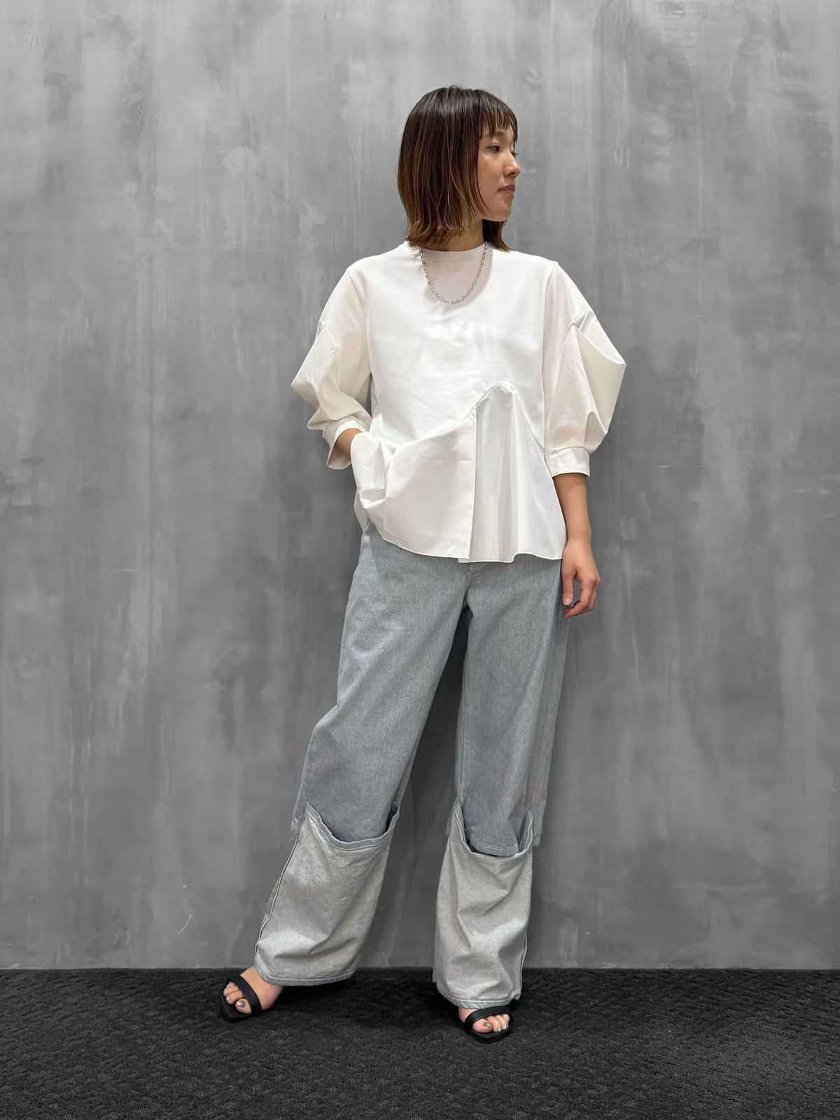 デザイン性のあるトップスは、シンプルなボトムと合わせるだけで