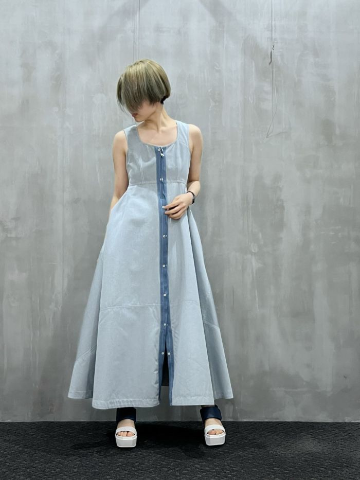 スポーティーなムードと上質な素材感が融合したノースリーブドレス。鮮やかなブルーのカラーリングが目を引く一枚です。