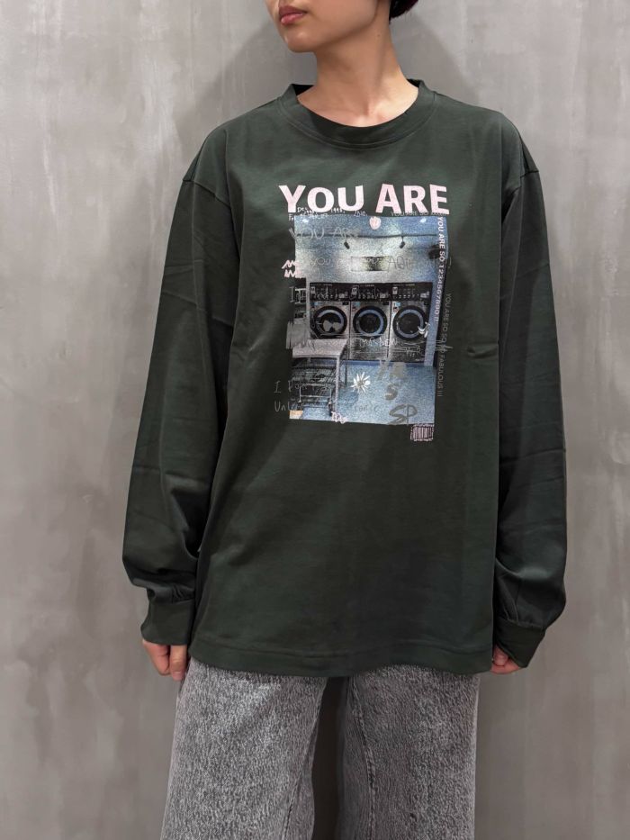 アート性とストリート感を融合させたグラフィックロングスリーブTシャツ。フロントに配された「YOU ARE」のタイポグラフィと、ヴィンテージライクなフォトコラージュプリントが印象的で、まるでアートピースのような存在感を放ちます。90年代カルチャーを感じさせるデザインは、トレンドのレトロムードを自然に取り入れたい方にもおすすめです。