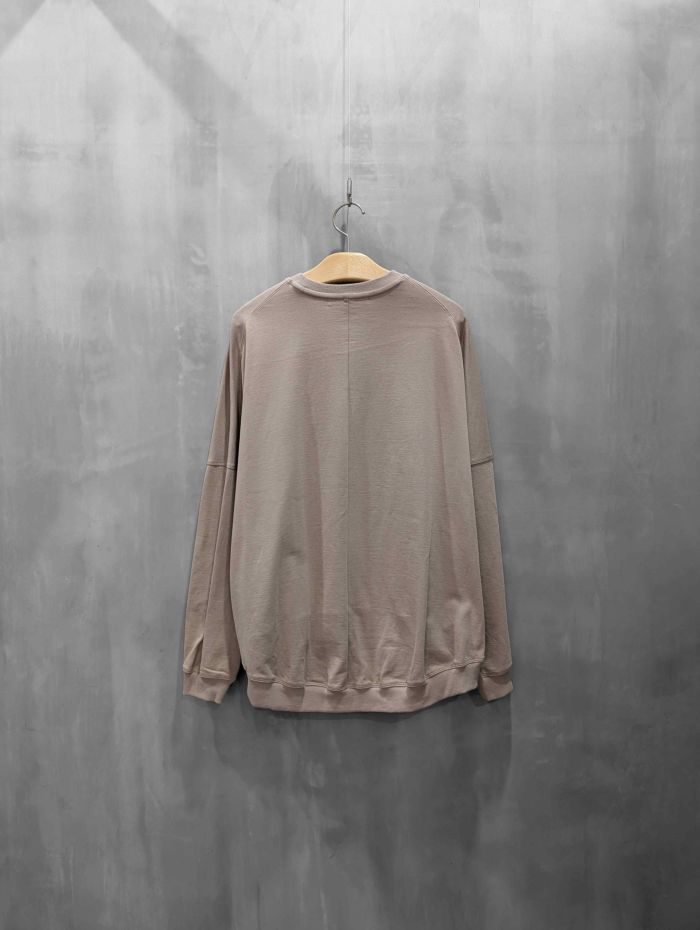 薄手のカットソー生地で、全体的にゆとりを持たせたシルエットは快適な着心地で晩夏から着用可能です。