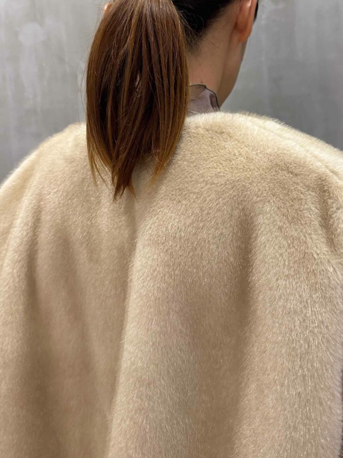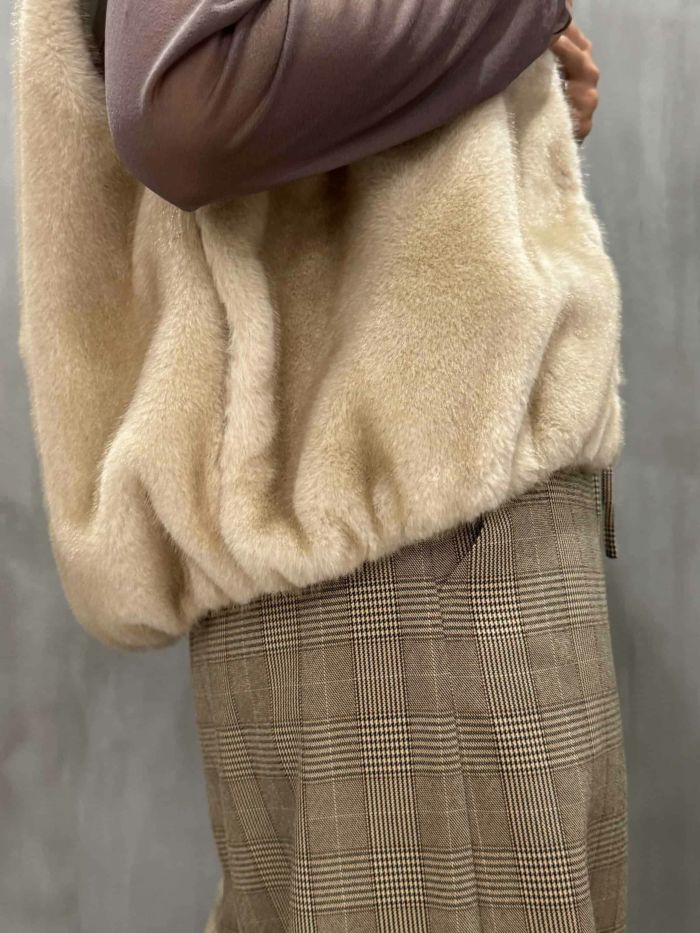 毛足の長い、肌触りの優しいファーを使用したショートジレ。
