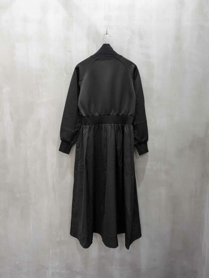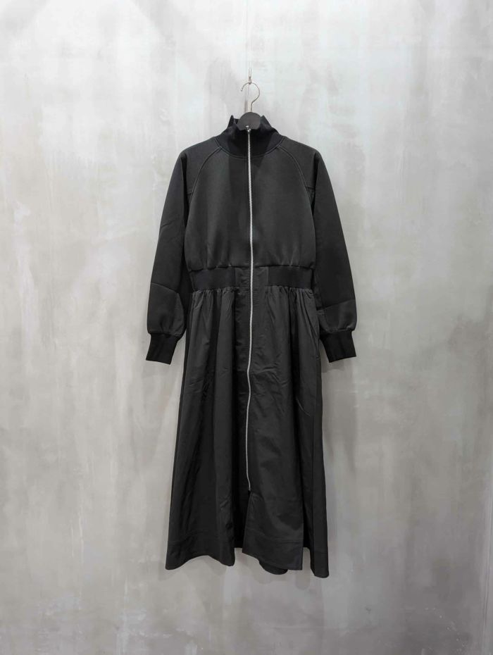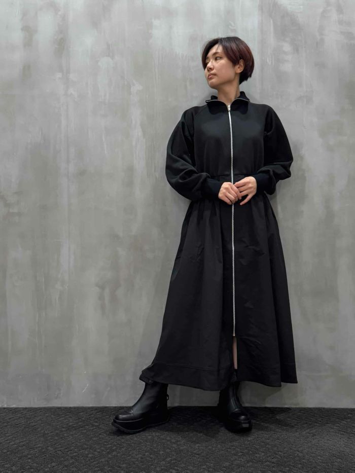 前を閉じれば端正なワンピースに、ジップを開ければ軽やかなロングアウターとして、シーンに合わせて自在に表情を変える一枚です。