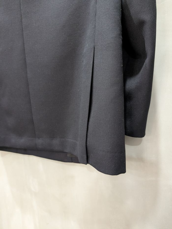 背抜きの前裏仕立てで軽やかに仕上げ、ヒップ丈のバランスがスタイリングの幅を広げます。