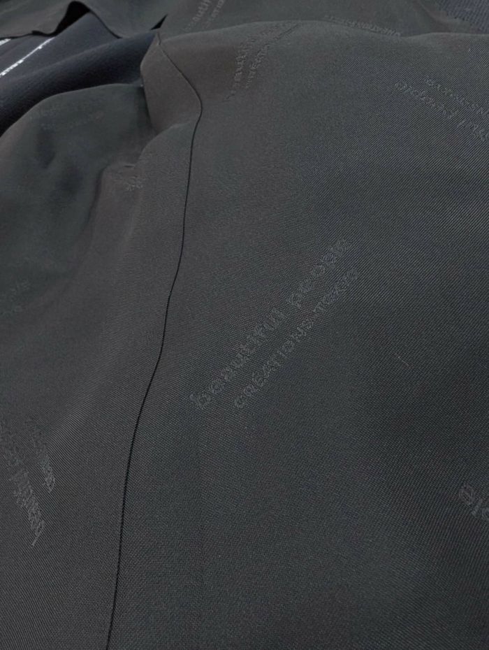 素材には、希少な紳士服用の耳ネームジャガード織機を使用し、特別に織り上げたロゴ耳フレスコ素材を採用。強撚糸を用いることで、しなやかな風合いとドライな肌触りを実現しました。