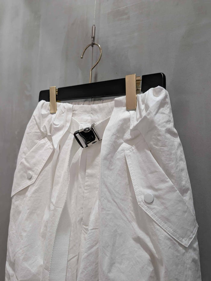 ウエストのベルトでサイズ調整が可能で後ろ見頃にはゴムが入っているためイージーな履き心地。