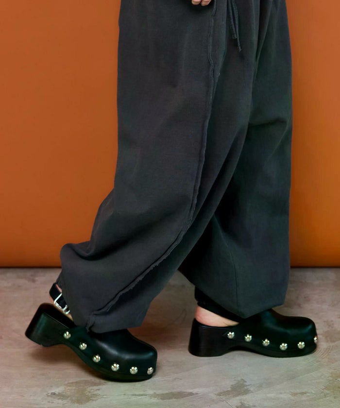 存在感のあるスタッズと、リアルウッドソールが印象的なMAISON SPECIALのボリュームクロッグ。