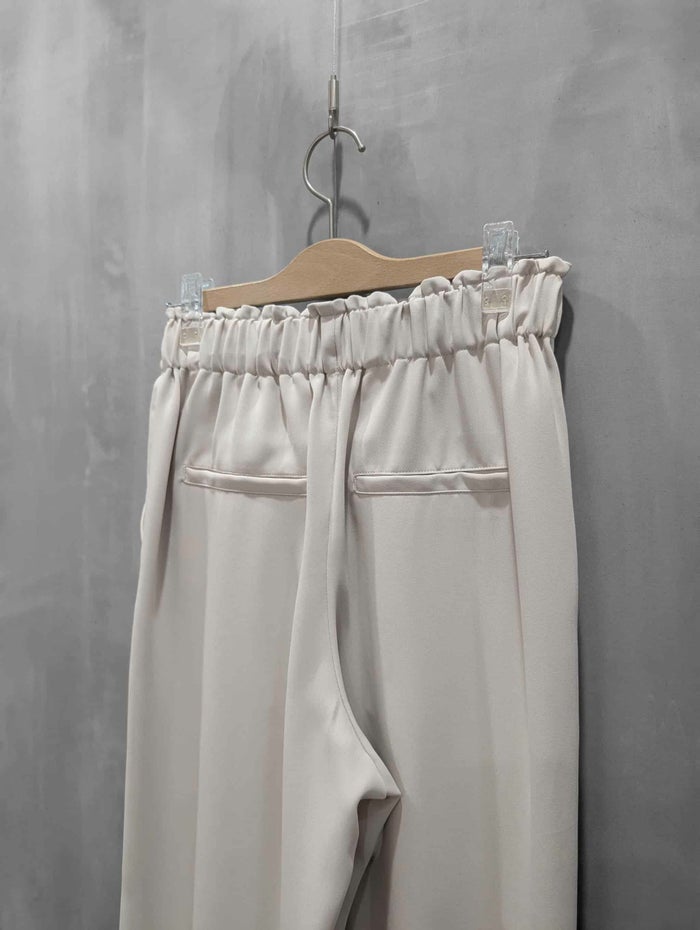 サイズ2を履いています。9号サイズの方やゆったり履くのもオススメ!定番の素材で、シワになりにくく使いやすいです。ウエストゴムで履きやすいですよ。(スタイリストMika、167cm / 9〜11号)