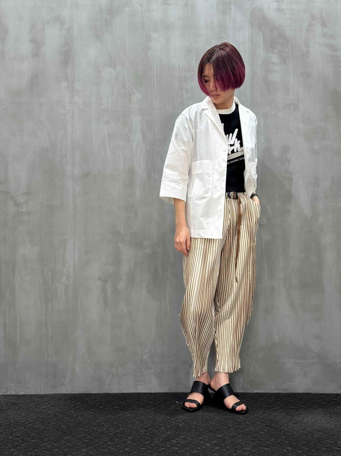 スタッフM:サイズ2着用→薄手の生地なのにヒップラインが気にならないシルエットで着やすいです。