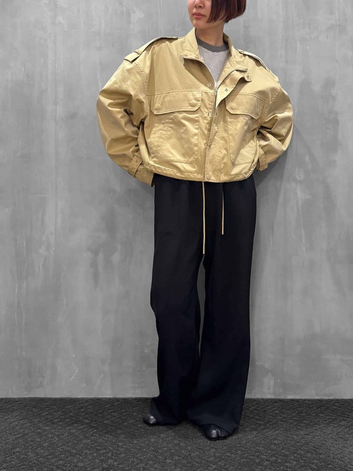 ミリタリーテイスト感じるスタンドカラーのショートブルゾン。