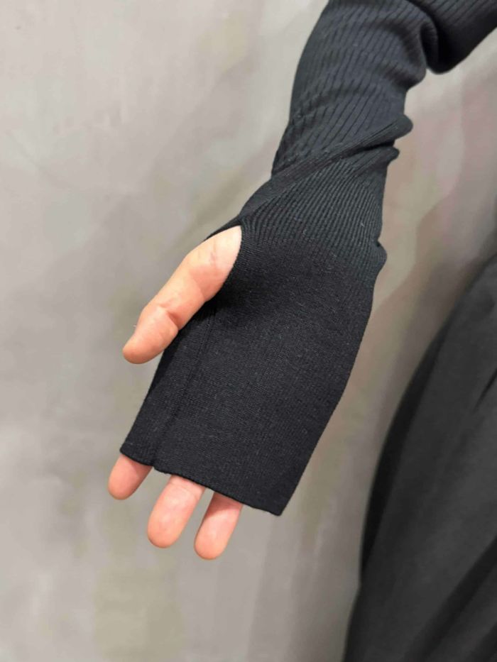 袖口にサムホールがついているので親指を出して着用いただけます。