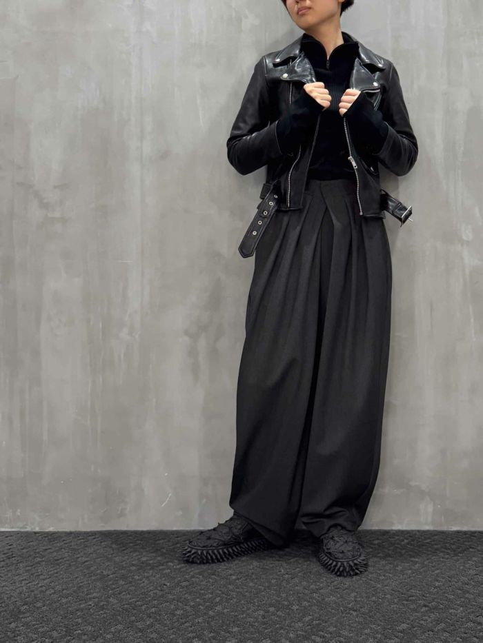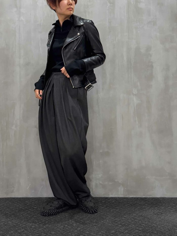 袖丈が長めなので、アウターの袖口からニットをのぞかせるコーディネートがおすすめです。