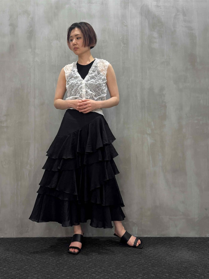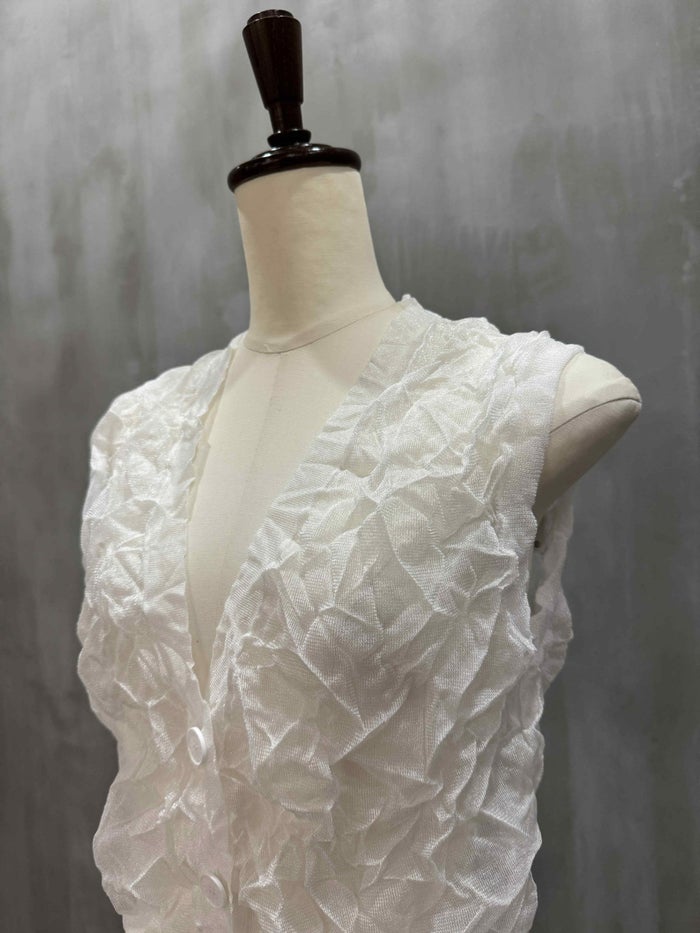 くしゅっとしたリンクル加工を施した存在感あるジレ。