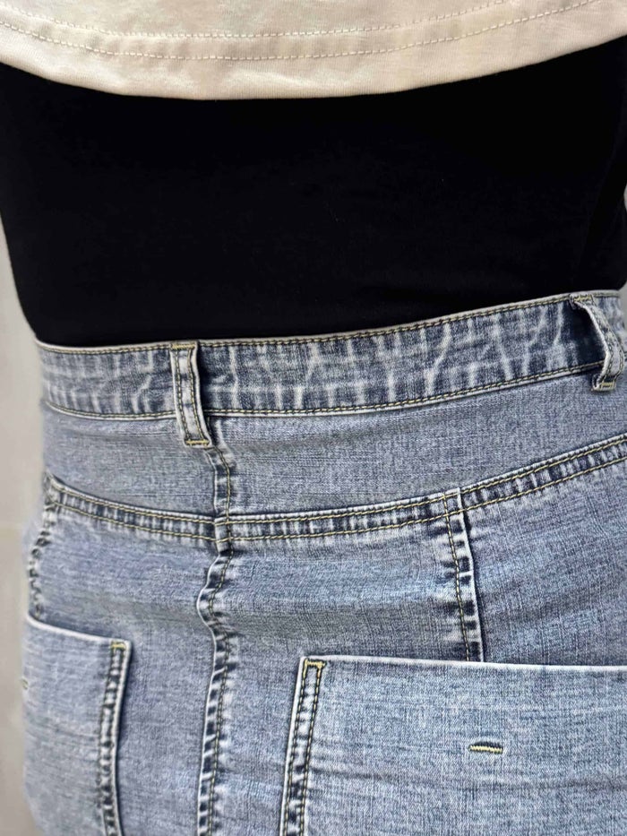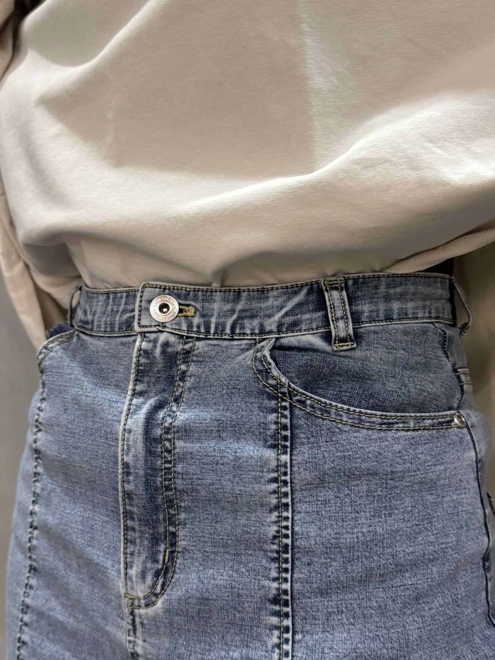 ストレッチの効いたデニムを使用。 身体を細く見せたい方におすすめ。 薄すぎない肉感と伸縮性で安心して着用いただけます。