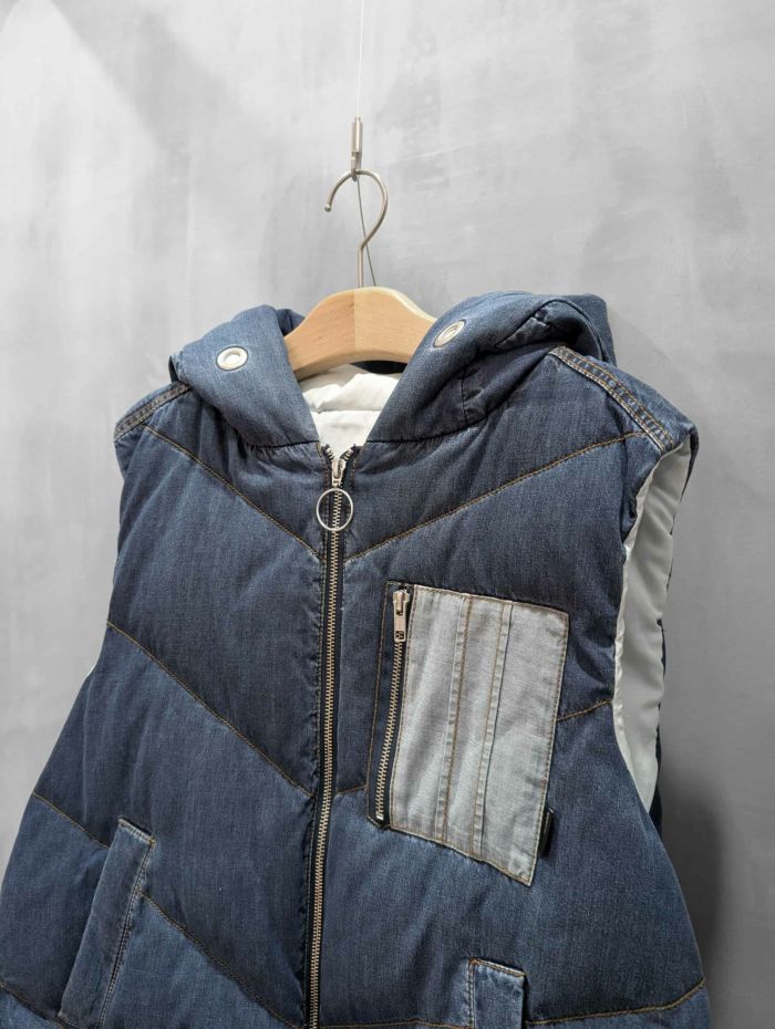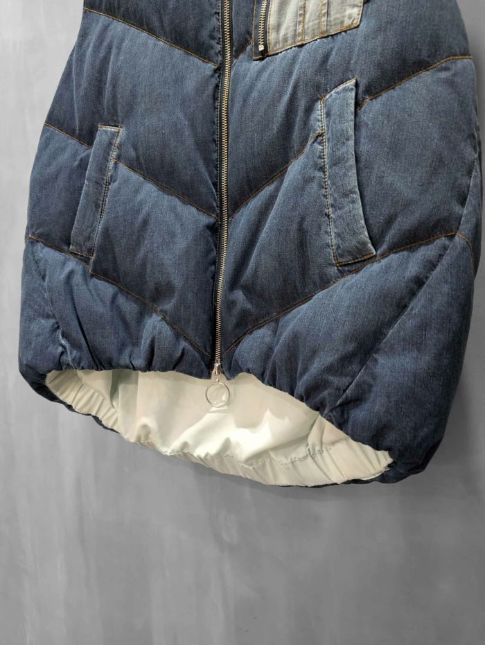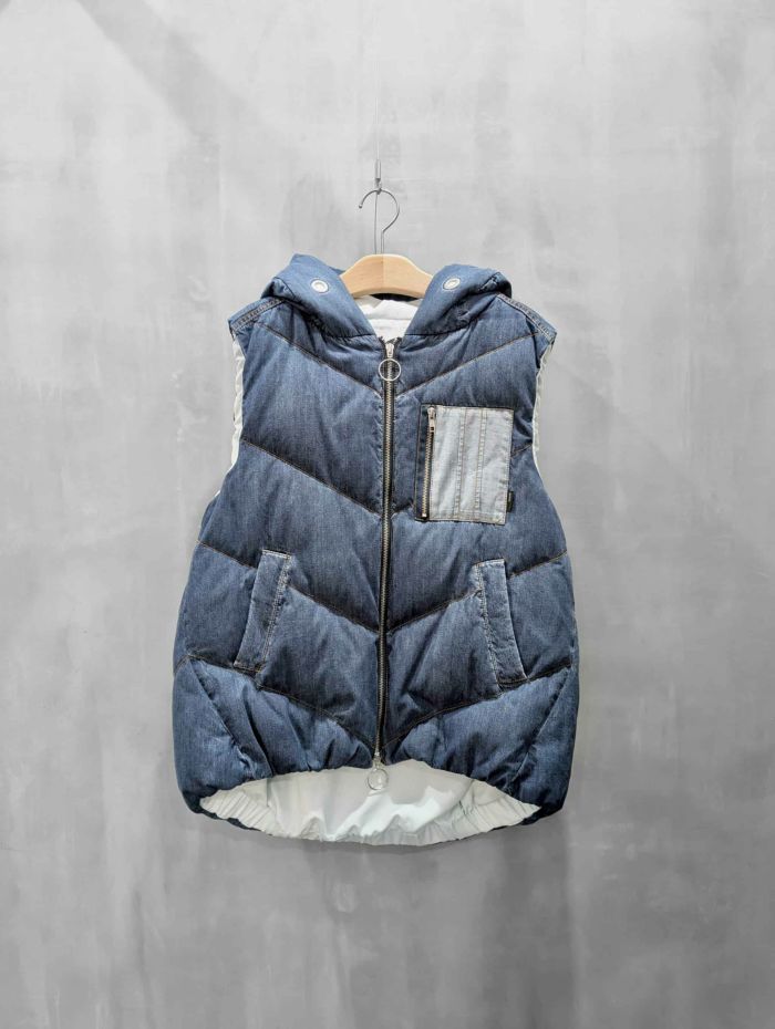 ダンガリー素材のダウンベストです。