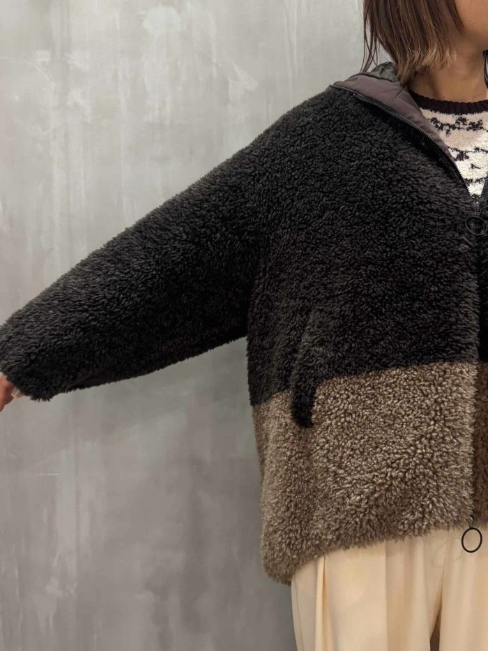 ayaneではお馴染みのボアブルゾンですが今回は微光沢の高級感あるボアを使用しました。