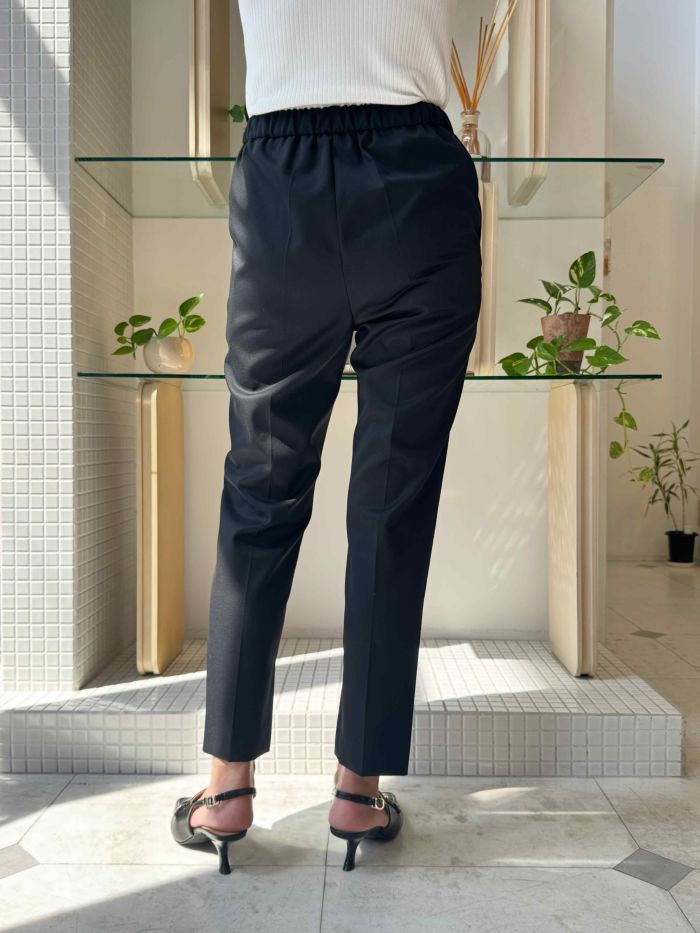 上質なウール100%素材を使用したテーパードパンツ。シンプルでありながら洗練されたシルエットが、大人のスタイリングを格上げします。