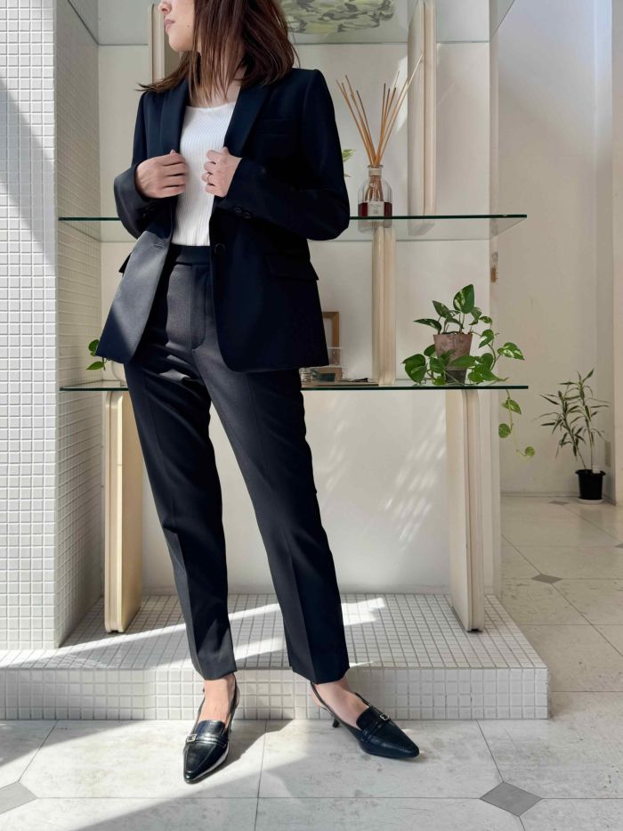 裾に向かって程よく細くなるテーパードシルエットと裾のスリットで、脚のラインを美しく見せながら動きやすさも叶えてくれるデザイン。上品な光沢感と柔らかな風合いのウール素材が、秋冬のスタイルに暖かさと品格をプラスします。