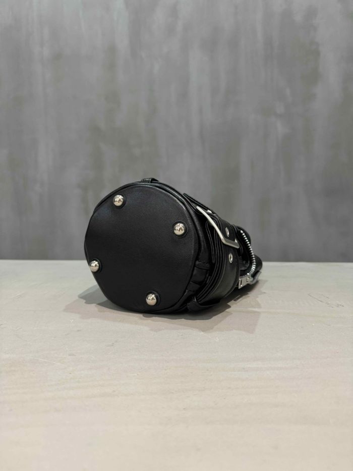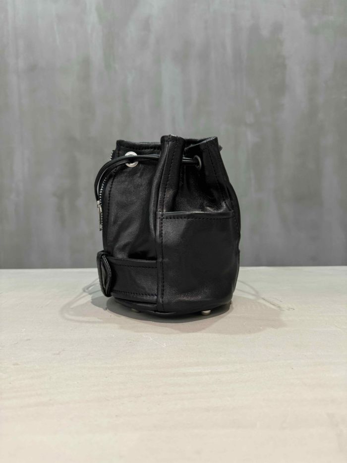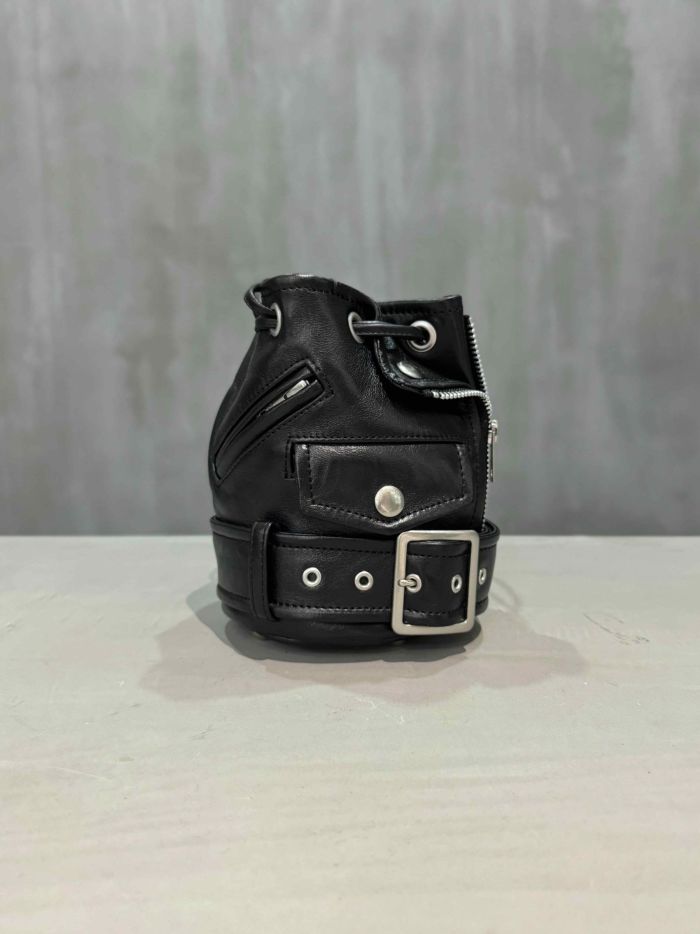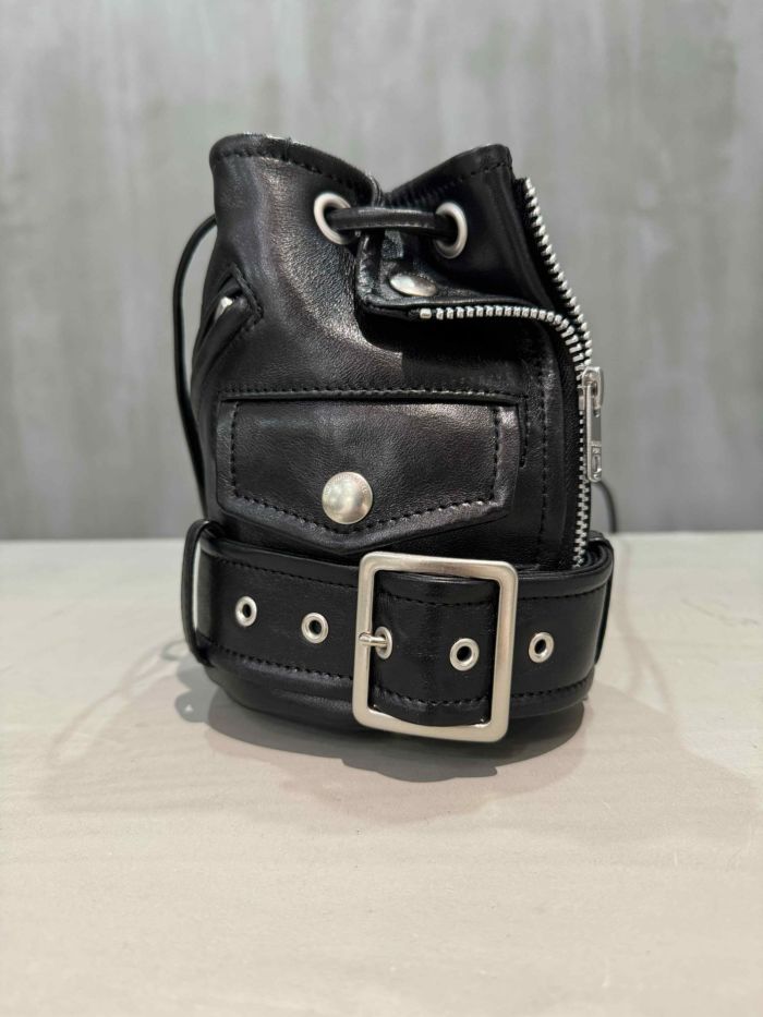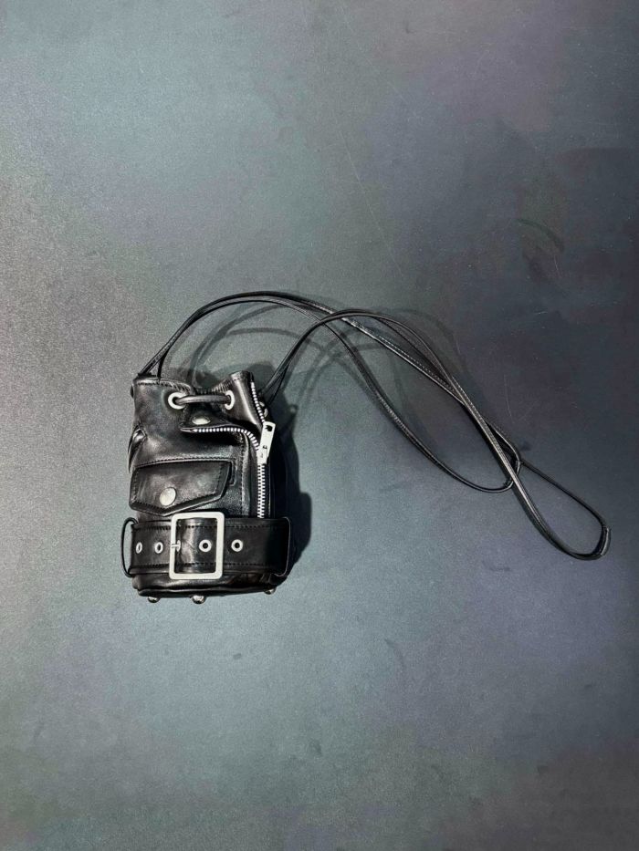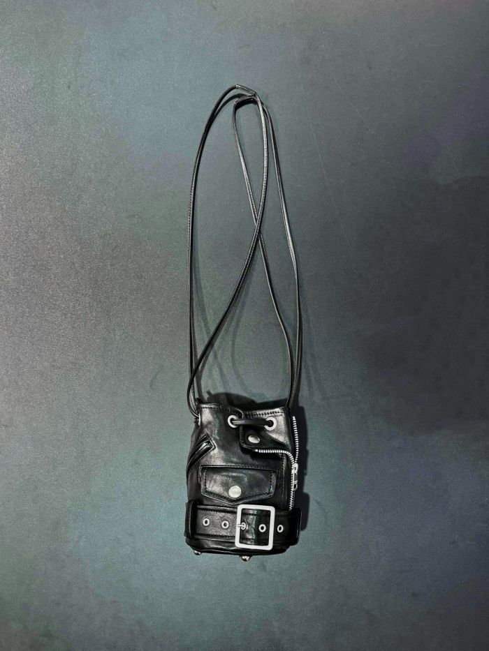 ライダースジャケットのディテールを凝縮したミニバッグ。