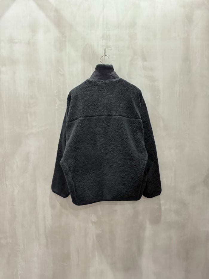 ボア素材の常識を覆す、構築的なフォルムと奥行きある色合いが魅力のジップアップブルゾン。