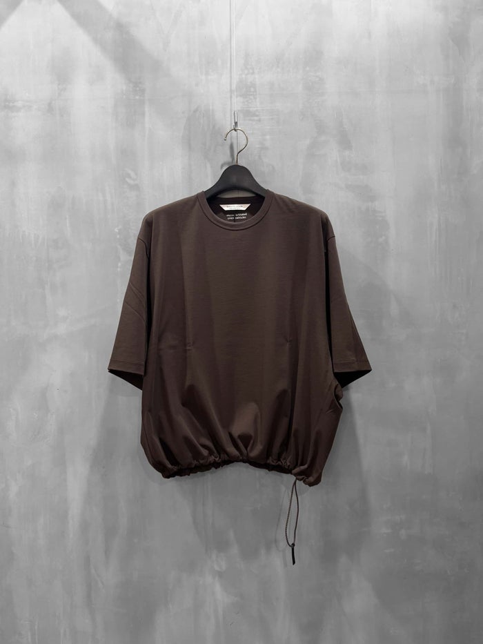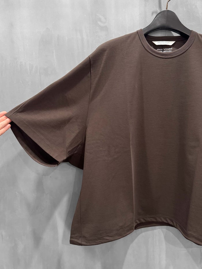 ・アームホールが肩から落ちたフォルムが特徴的なTシャツ