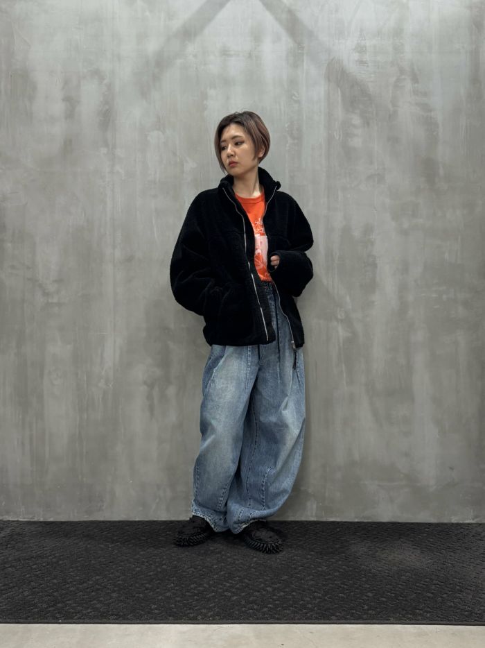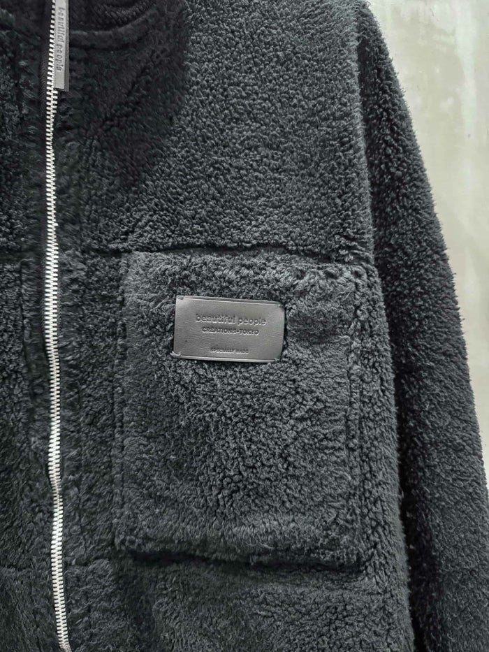 ボア素材の常識を覆す、構築的なフォルムと奥行きある色合いが魅力のジップアップブルゾン。