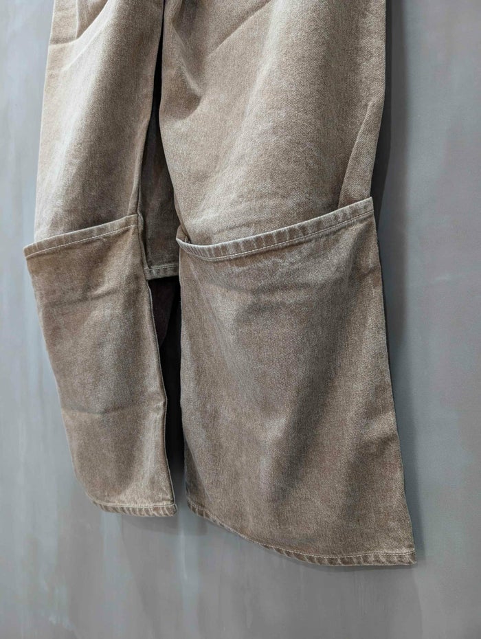 beautiful people(ビューティフルピープル)から届いた「organic FOX brown flip hem pants(オーガニックフォックスブラウン フリップヘムパンツ)」は、上質な素材とユニークなディテールが融合した、洗練されたワイドストレートパンツです。
