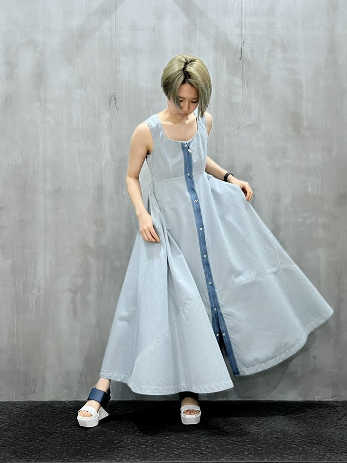 スポーティーなムードと上質な素材感が融合したノースリーブドレス。鮮やかなブルーのカラーリングが目を引く一枚です。