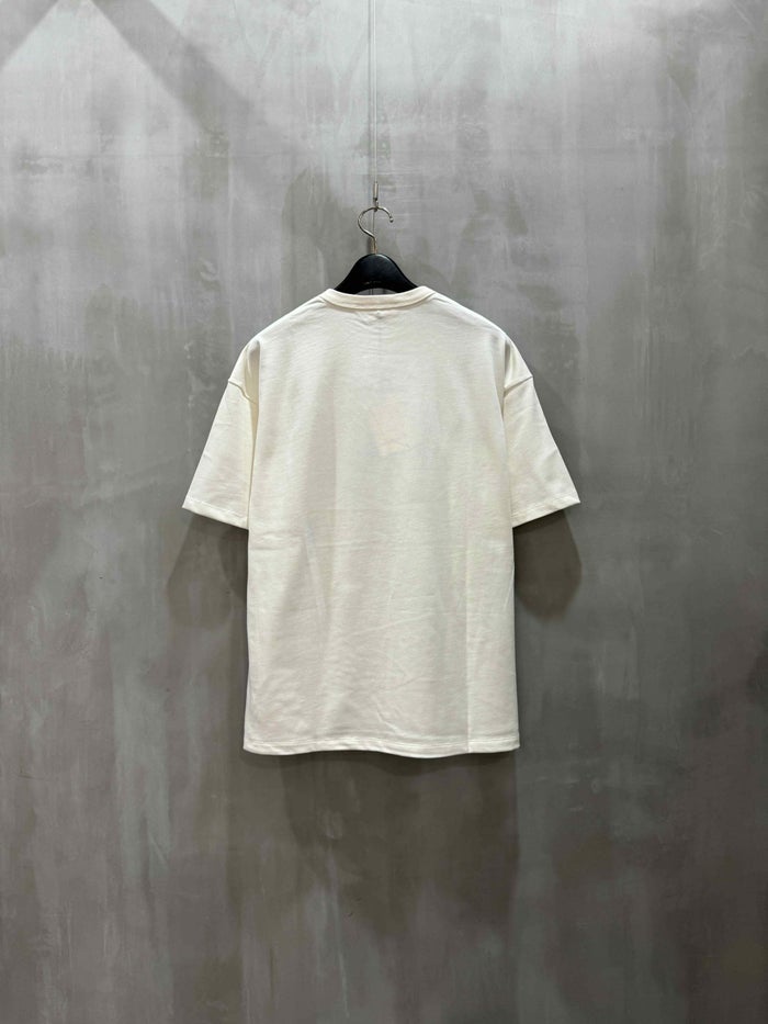 洗練されたデザインと贅沢な素材感が特徴のオーバーサイズTシャツ。たっぷりとした分量感のシルエットで、リラックスしたスタイルとモダンな印象を兼ね備えています。左胸にはポケットがあり、タイポグラフィーのメッセージロゴ刺しゅうが施されています。立体的で厚みのある刺しゅうが、シンプルなデザインに個性的なアクセントを加えています。