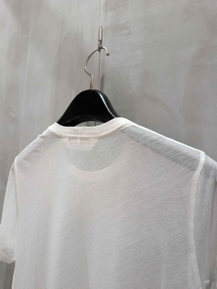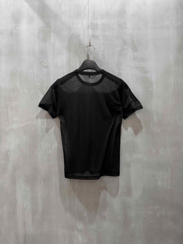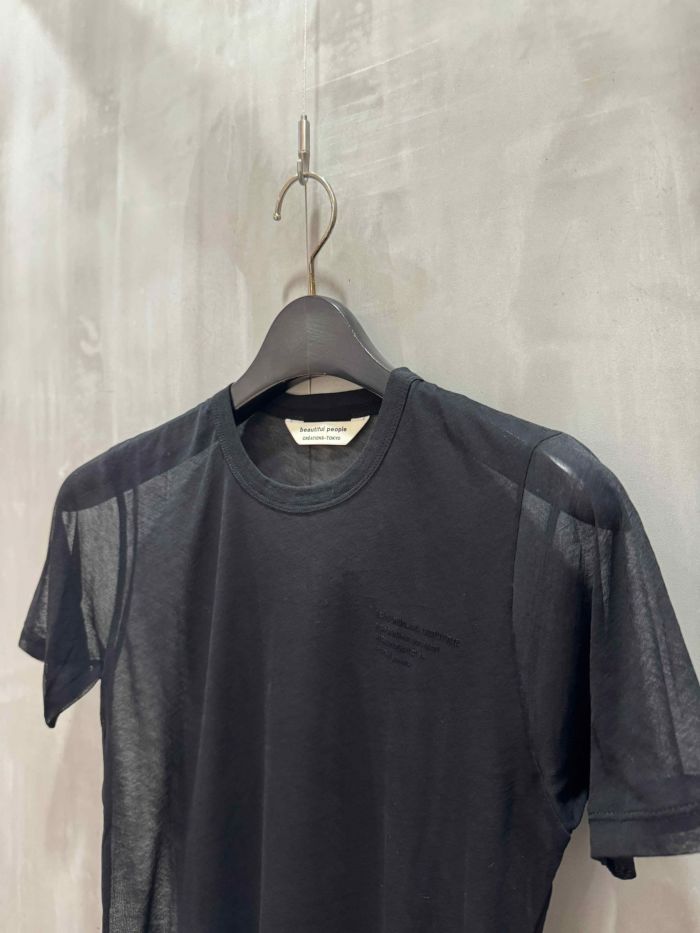 繊細で美しい透け感が魅力の「sheer jersey akzidenz grotesk T」は、洗練されたレイヤードスタイルを叶えるbeautiful peopleのシアーTシャツ。細番手のコットン糸を丁寧に編み上げたシースルー天竺素材は、まるでストッキングのような高い伸縮性と、ドライで清涼感のある肌ざわりを両立しています。