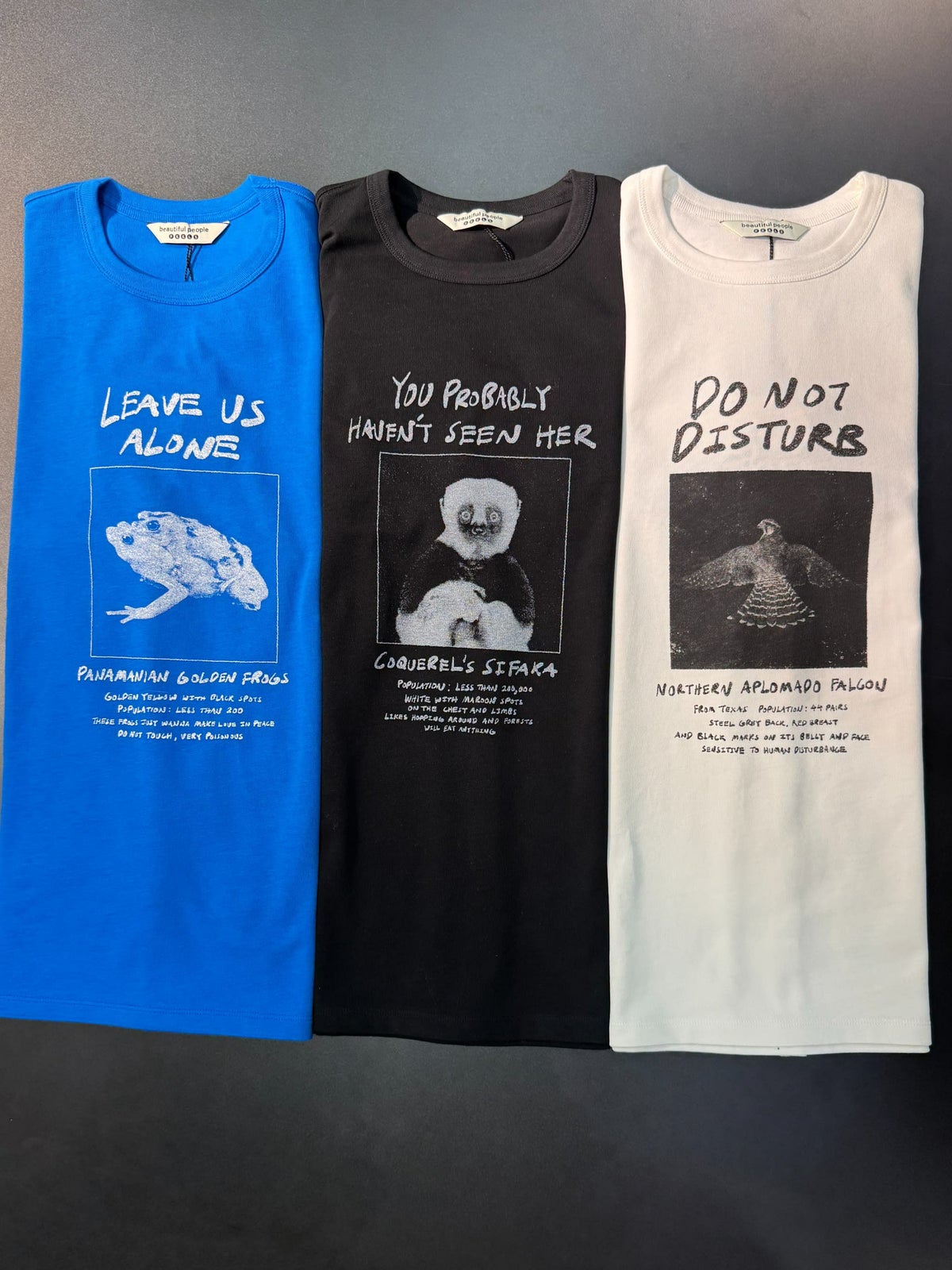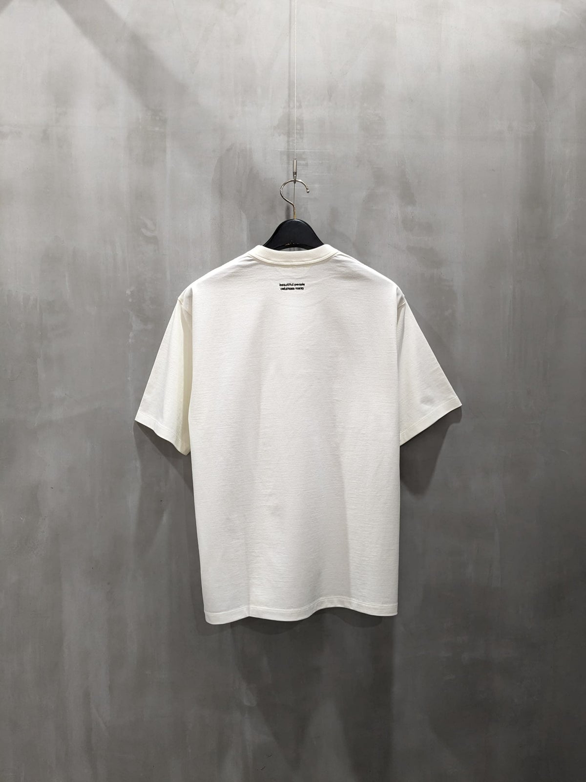 beautiful peopleといえば、ヴィンテージレザーアイテムやブランドロゴの入ったタグ付きトートバッグが思い浮かびますが、着る人を選ばず、コーデに困らないのが定番Tシャツ。