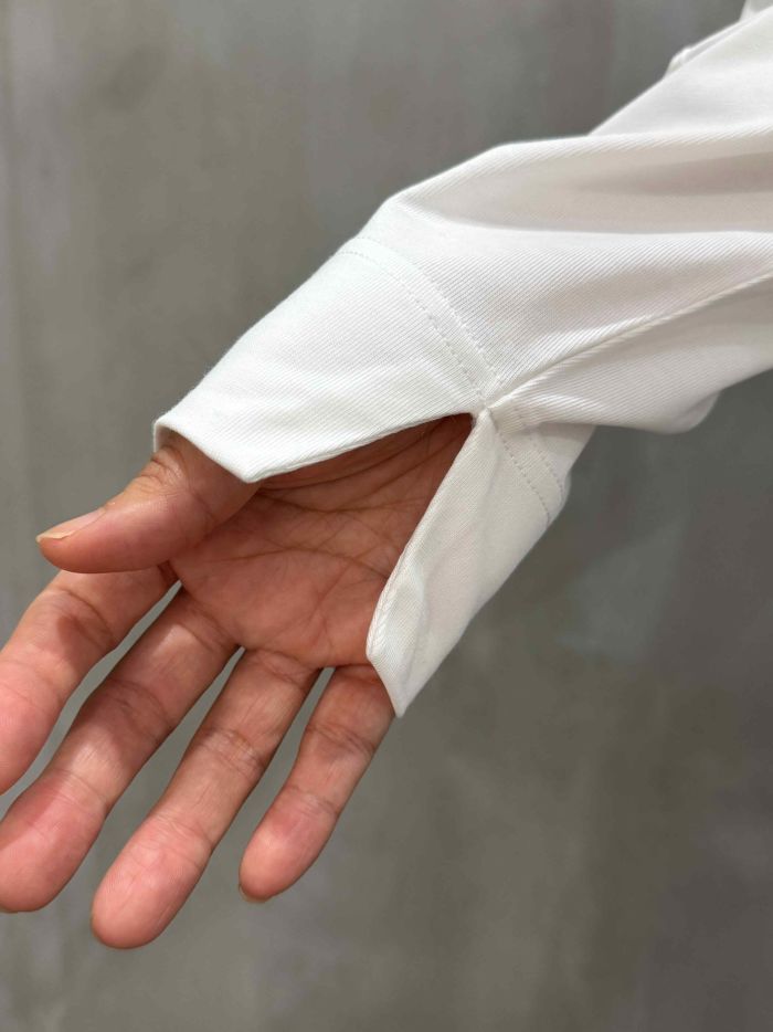 生地感| 透け感 | なし | 普通 | 001 white あり |