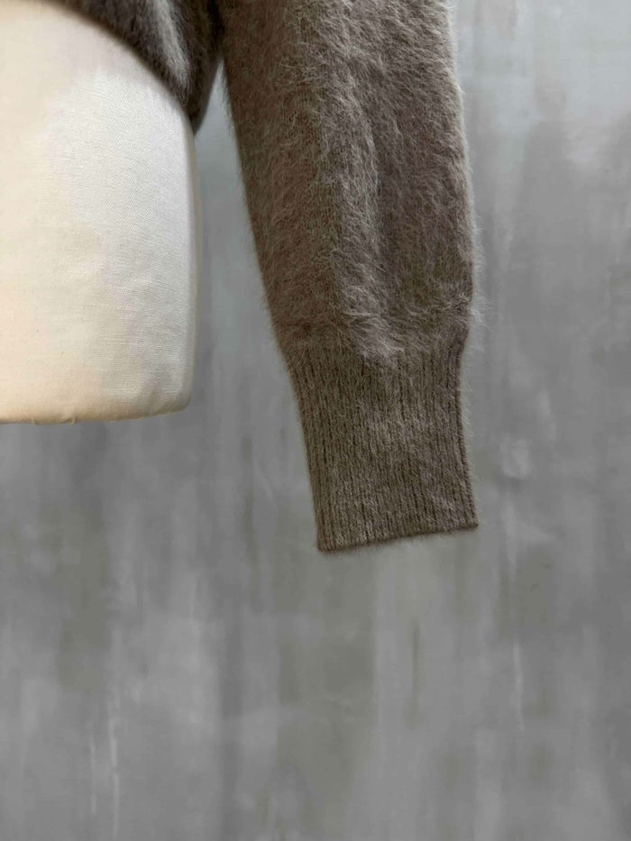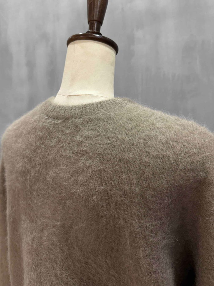 しっかりと厚みがありながらも、糸の軽さでふんわりと柔らかく、他にないボリューム感が贅沢な高級感のある一着です。