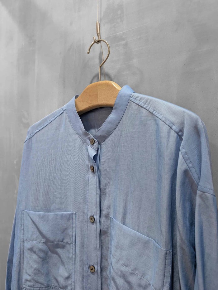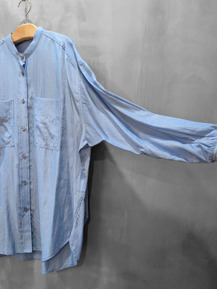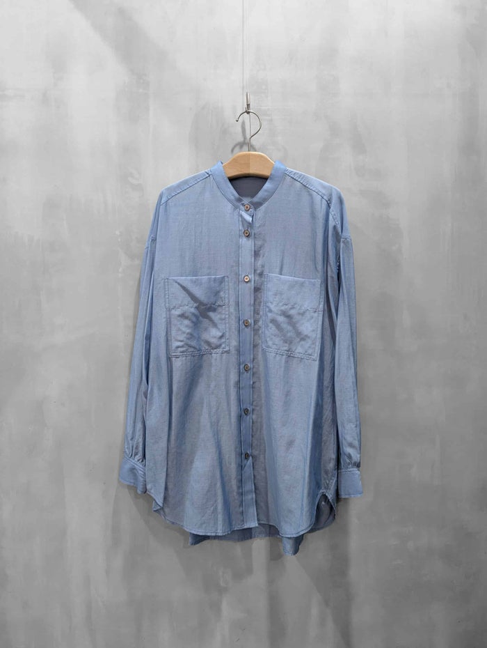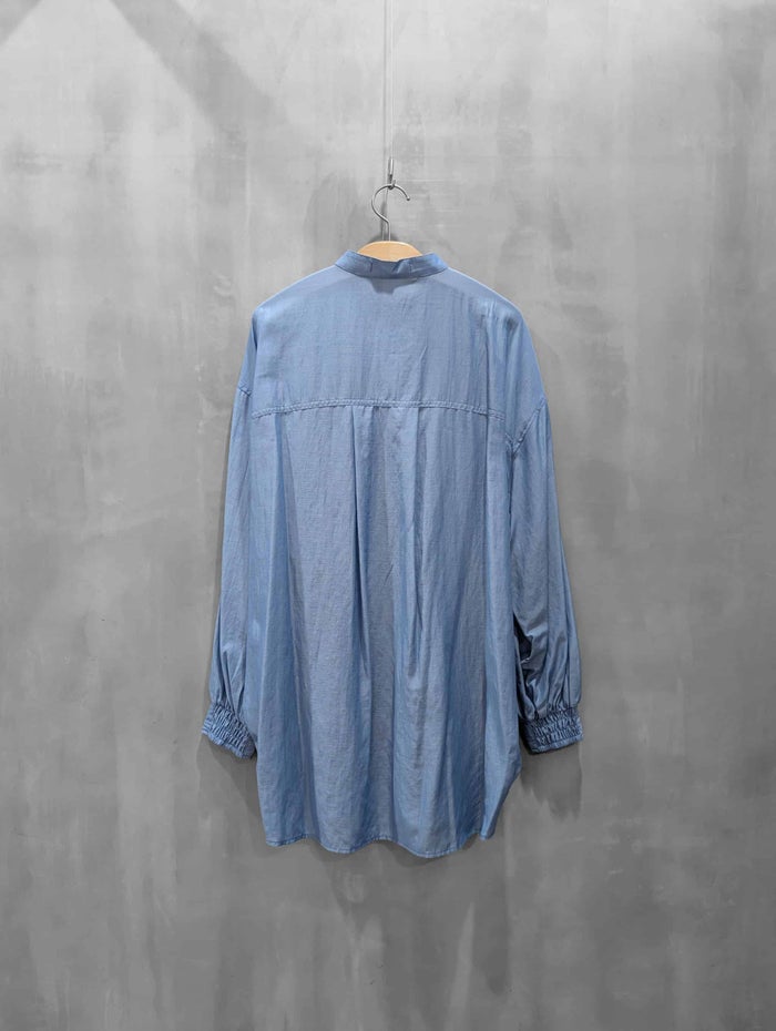 コットンオーガンジーを思わせる、繊細で軽やか、程よいハリ感のある素材を用いて作ったオーバーサイズシャツです。