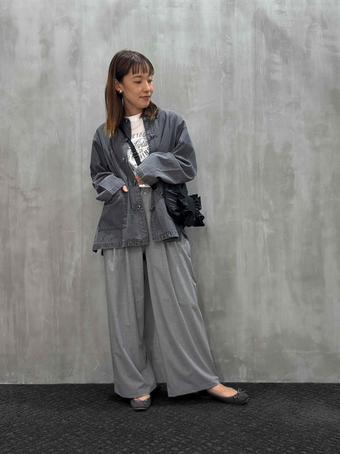 チャイナっぽいボタンとオーバーシルエットが可愛い♡羽織にもピッタリです!(スタイリストChiharu)