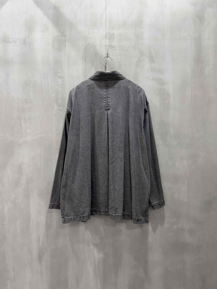 シャツ感覚で軽やかに羽織れる、デニム素材のチャイナシャツジャケット。