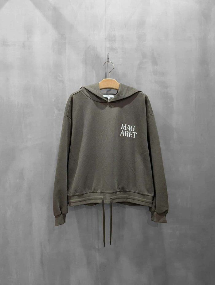 フロントに「MAGARET」のロゴをあしらった、カジュアルながらも洗練された雰囲気のフーディ。