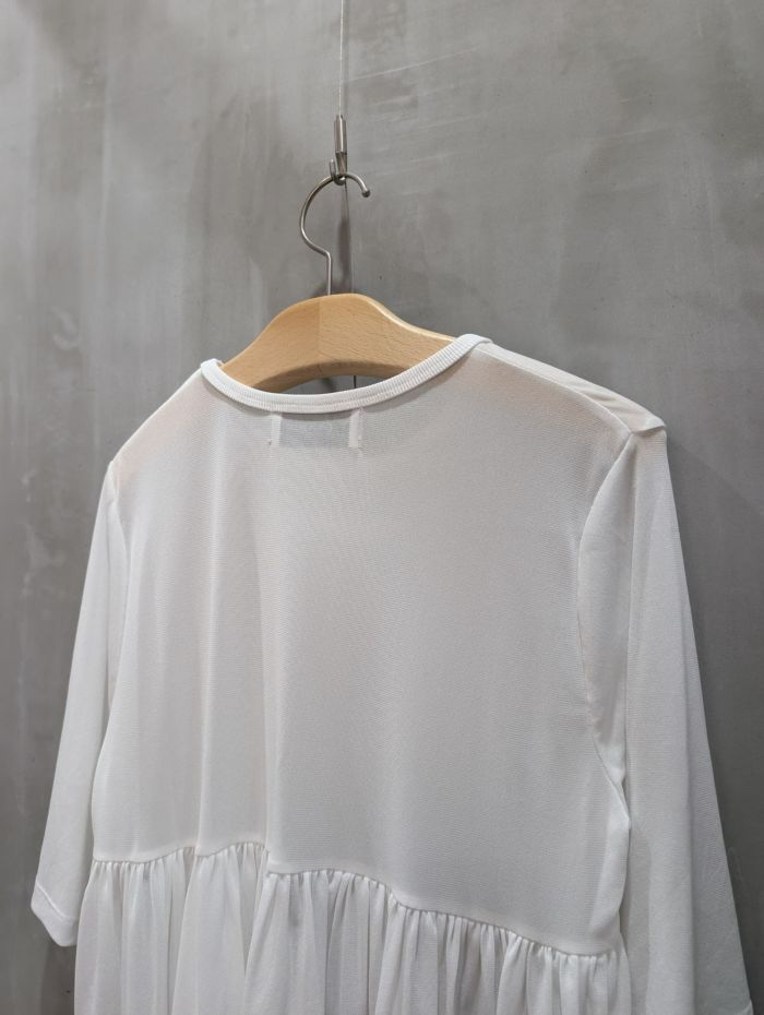 CYAN TOKYO ハーフスリーブバックギャザーチュールトップス