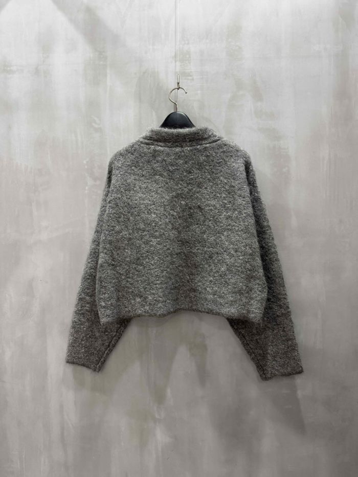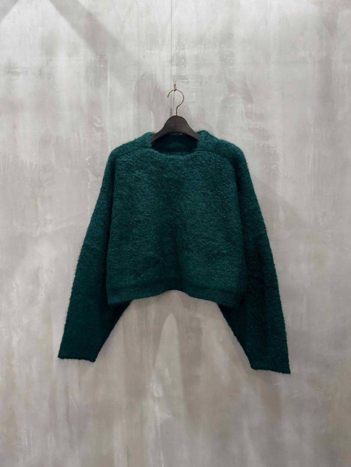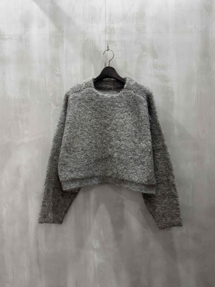 divka(ディウカ)ならではの立体感とテクスチャーを活かした、ループ編みニット。ふわりと空気を含んだモヘアブレンド糸を使用し、柔らかく軽やかな着心地と、繊細で印象的な編み模様を両立した一枚です。