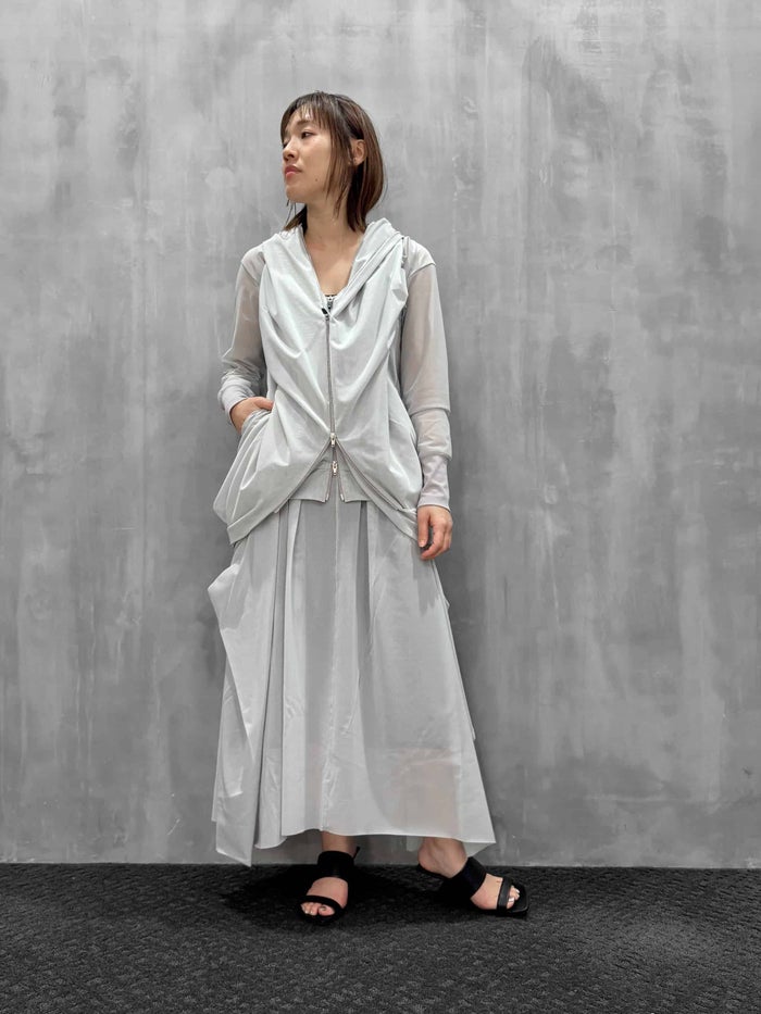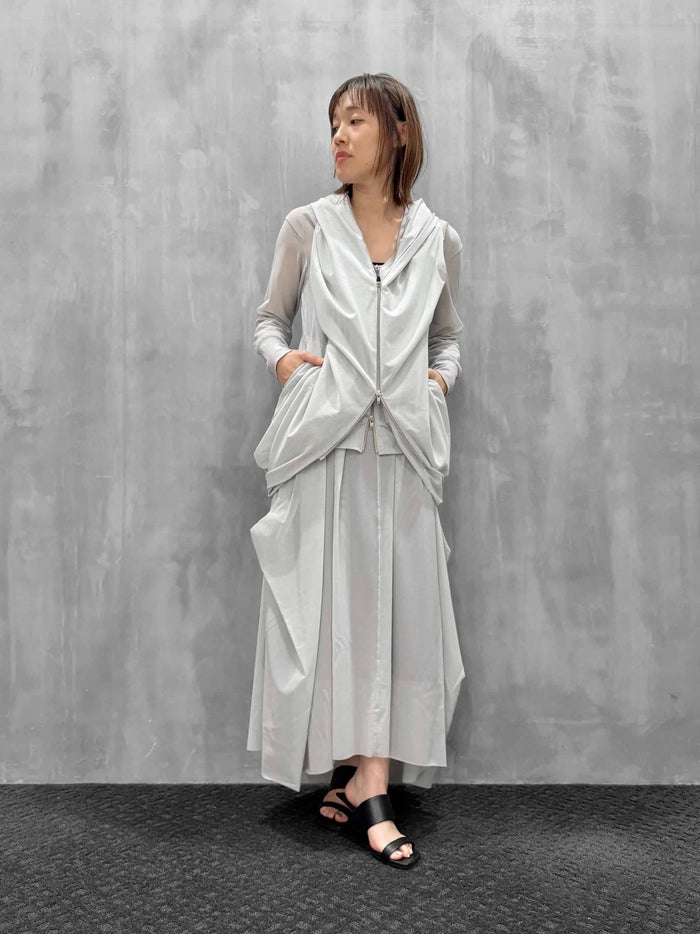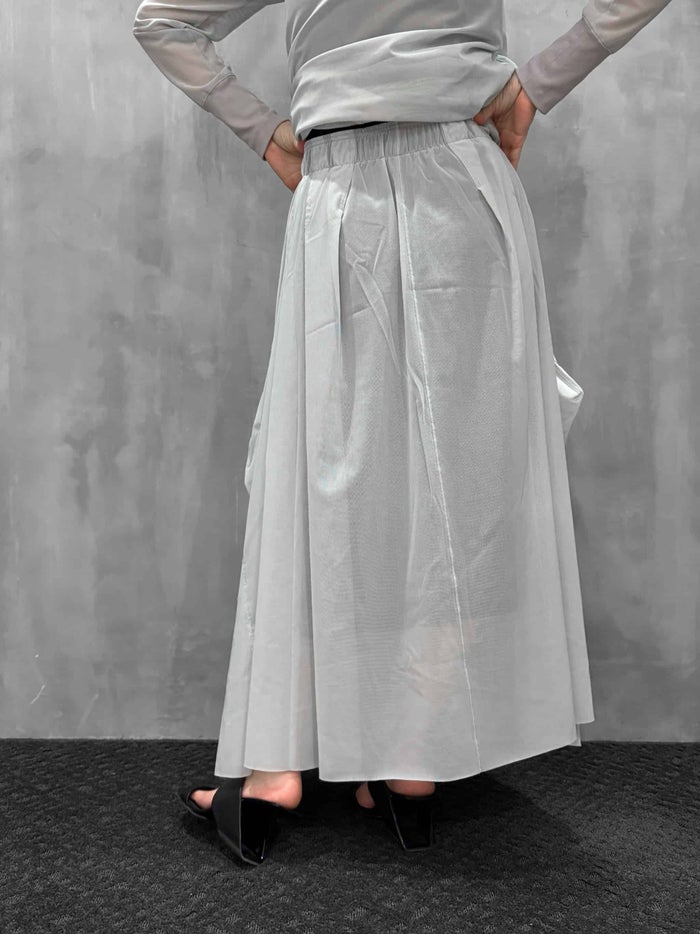 たっぷりと施されたタックが印象的で構築的なシルエットのロングスカート。