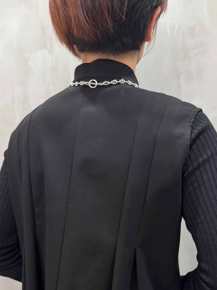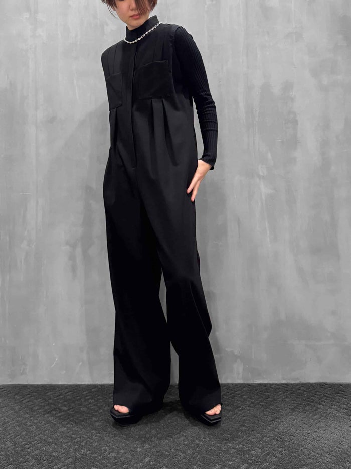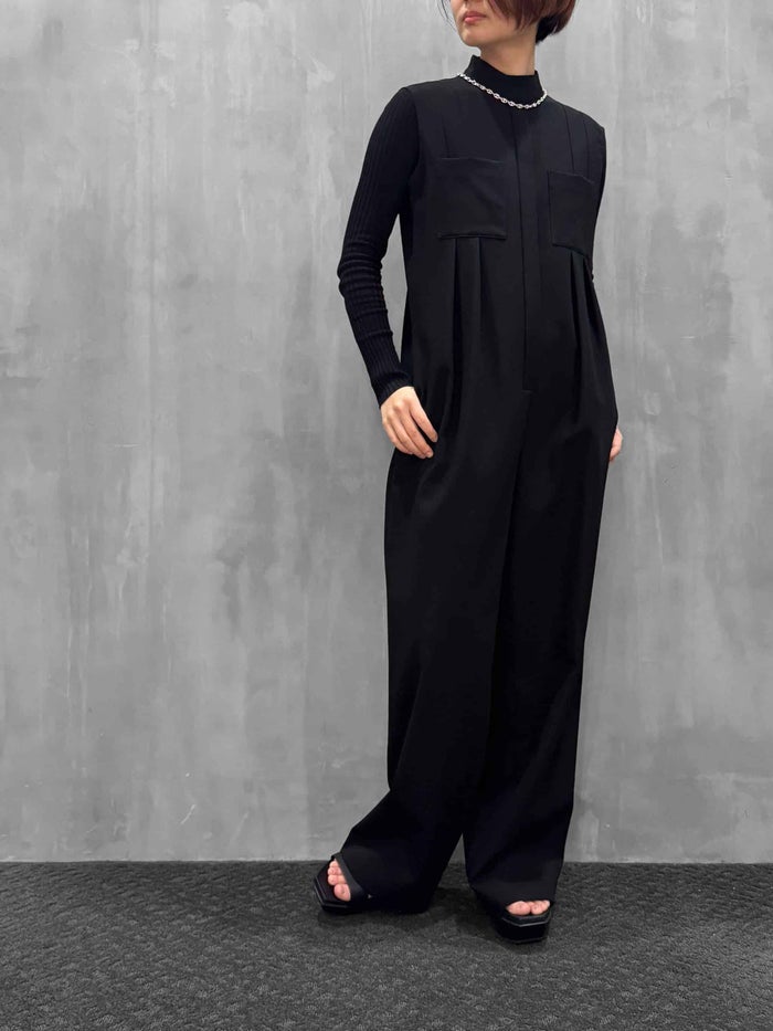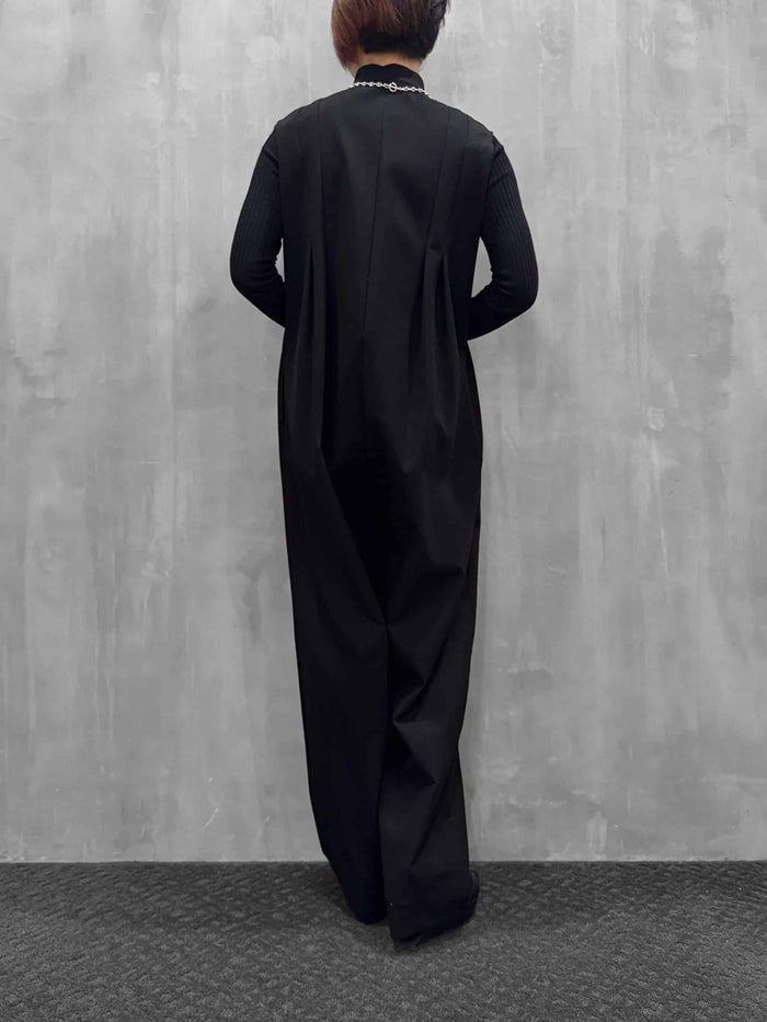 60/2のボイルの二重織をGENDAI加工で進化させた生地を使用。 綿でありながら合繊のようなタッチでなめらかな風合いと、シワになりにくい反発感が特徴的。 ふくらみ感を楽しみつつ、体型カバーが叶うオールインワンです。