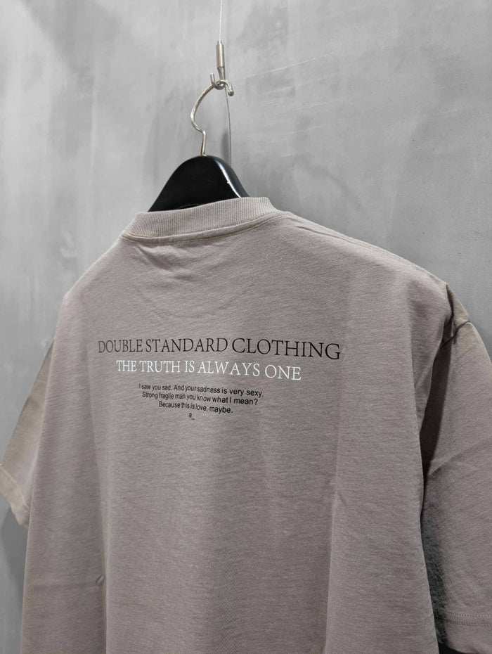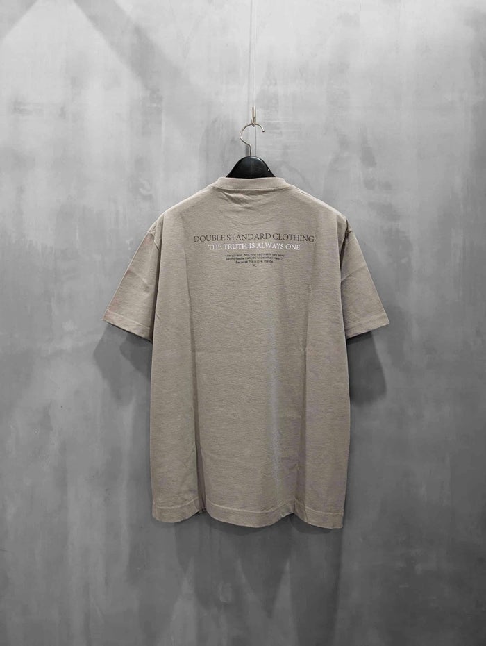 強撚を使用することでナチュラルなツイル目を表現した、透けにくく清涼感のある絶妙な肉感の生地を使用したプリントTシャツ。加工にも拘り、生地の揉み込みを重ねることで、しなやかな柔らかい風合いとヴィンテージ感を出している。デニム合わせがおすすめ。