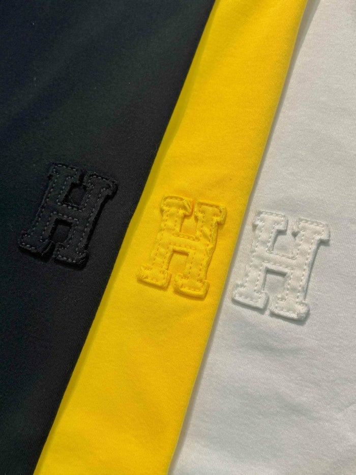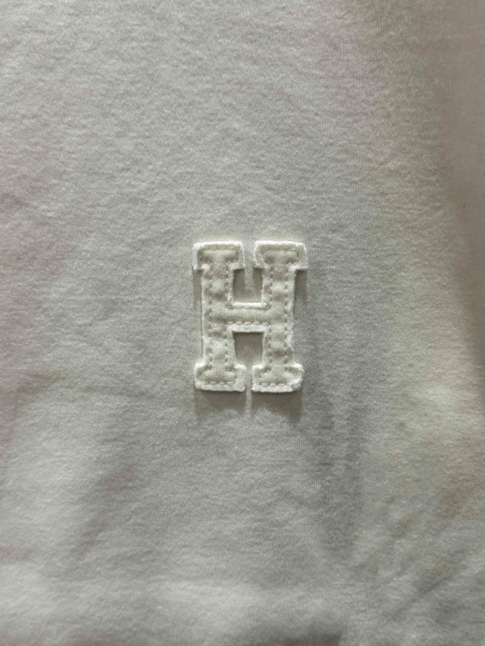 上質なベーシックスタイルを格上げする、大人のためのシンプルTシャツ。胸元に施された立体的な「H」ロゴ刺繍が、控えめながらも確かな存在感を放ちます。