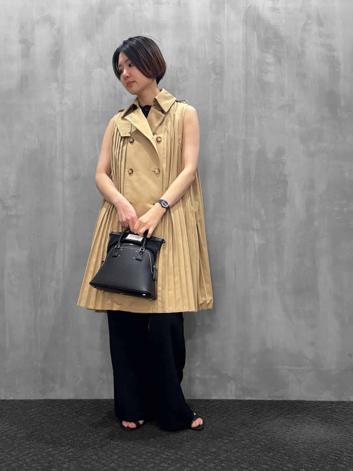 クラシックなトレンチコートの要素を踏襲しながら、袖を排し、プリーツによって再構築されたこの一着は、今季のテーマ「Sculpting the Void ― 余白を彫刻する」において象徴的な存在です。