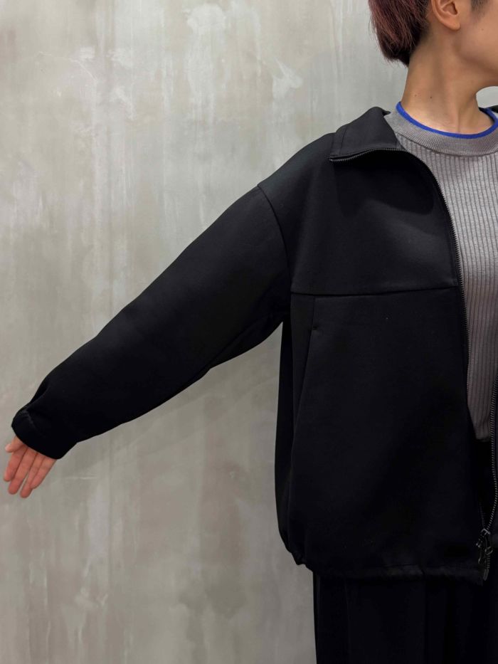 スタンドカラーデザインのジャージブルゾン。フードが苦手な方にもおすすめの羽織りアイテムで、今シーズンの大人カジュアルスタイルにぴったりの一枚です。