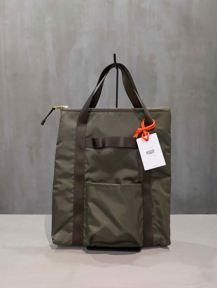 1stモデルのヘルメットバッグをイメージしながらデザインした、ミリタリーテイストのPC & etc トートバッグ。エルメス、グッチ、プラダなど名だたるブランドが採用するLIMONTA社製の高品質ナイロンを使用し、日常使いに最適なタフさと上品さを兼ね備えた仕上がりになっています。