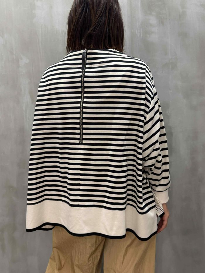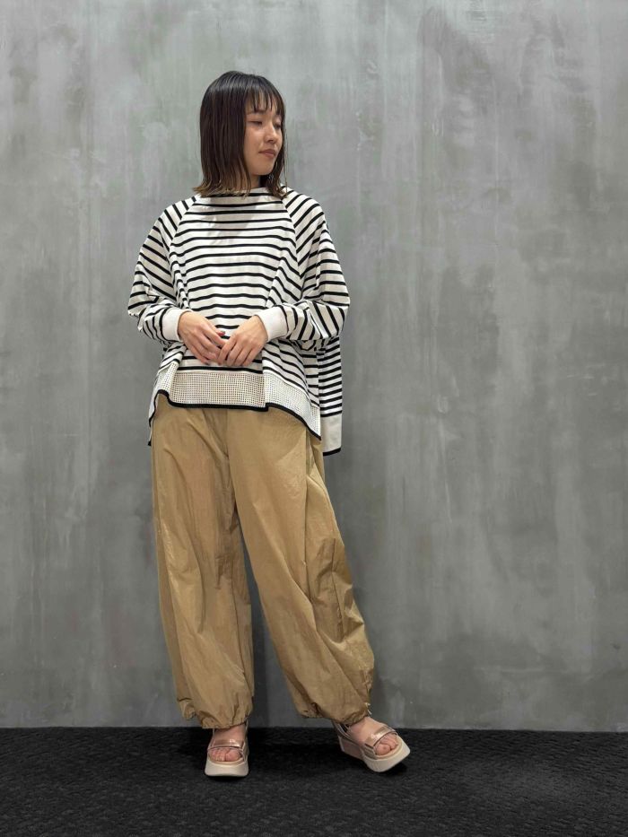 Lallia Mu メッシュヘムボーダーフレアプルオーバー