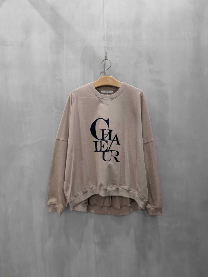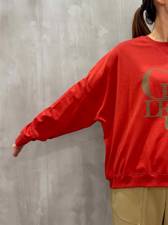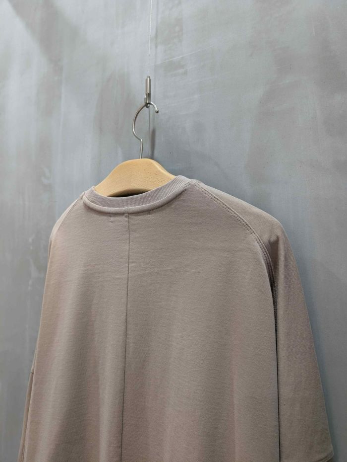 薄手のカットソー生地で、全体的にゆとりを持たせたシルエットは快適な着心地で晩夏から着用可能です。