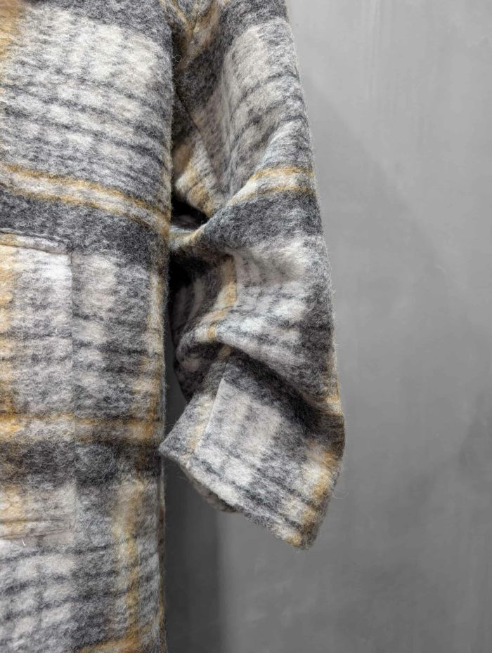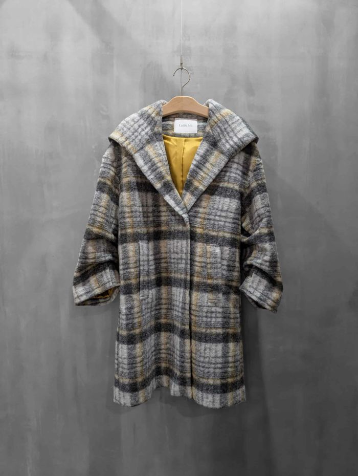 ふんわりとファンシーなチェック柄が品の良さの中に遊び心を感じるセミロングコート。