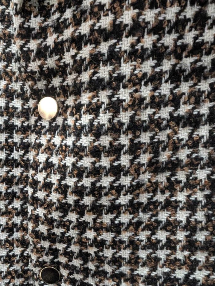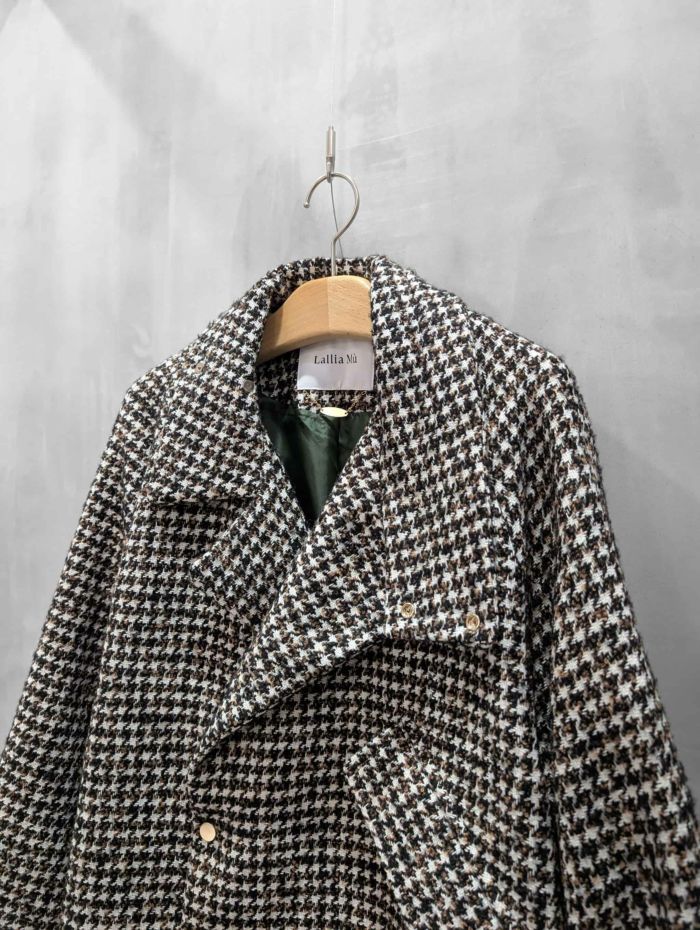 冬のスタイルに華やかさをプラスする、千鳥格子柄のロングコート。