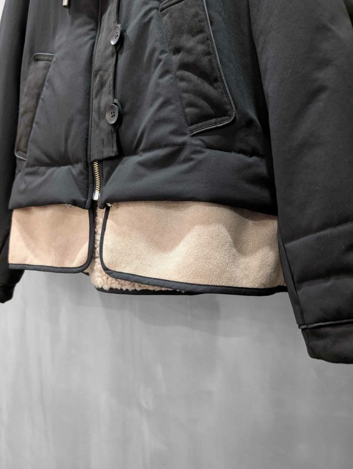 裾にバイカラースエードをドッキングしたアイコニックなデザインのラリアムーらしいフードコート。